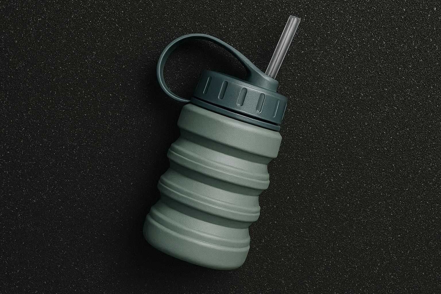 Designed for active lifestyles, this foldable cup features an integrated, reusable silicone straw and a splash proof push button lid. It holds 16 ounces (480ml) of liquid and folds into a compact 1.5 inch disc. The body is made from flexible, tear resistant TPU material, while the lid and straw are made from food grade silicone.