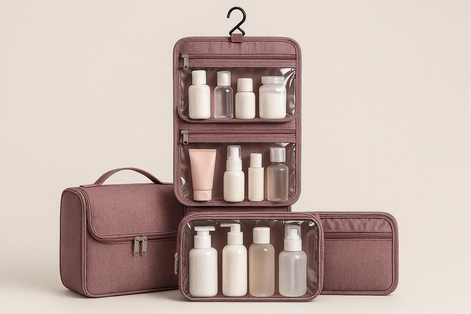 This set is perfect for extended vacations, business trips, or family travel. The hanging functionality saves valuable counter space in hotel bathrooms. Its durable construction and smart organization make packing and unpacking a breeze, ensuring you have everything you need within easy reach.