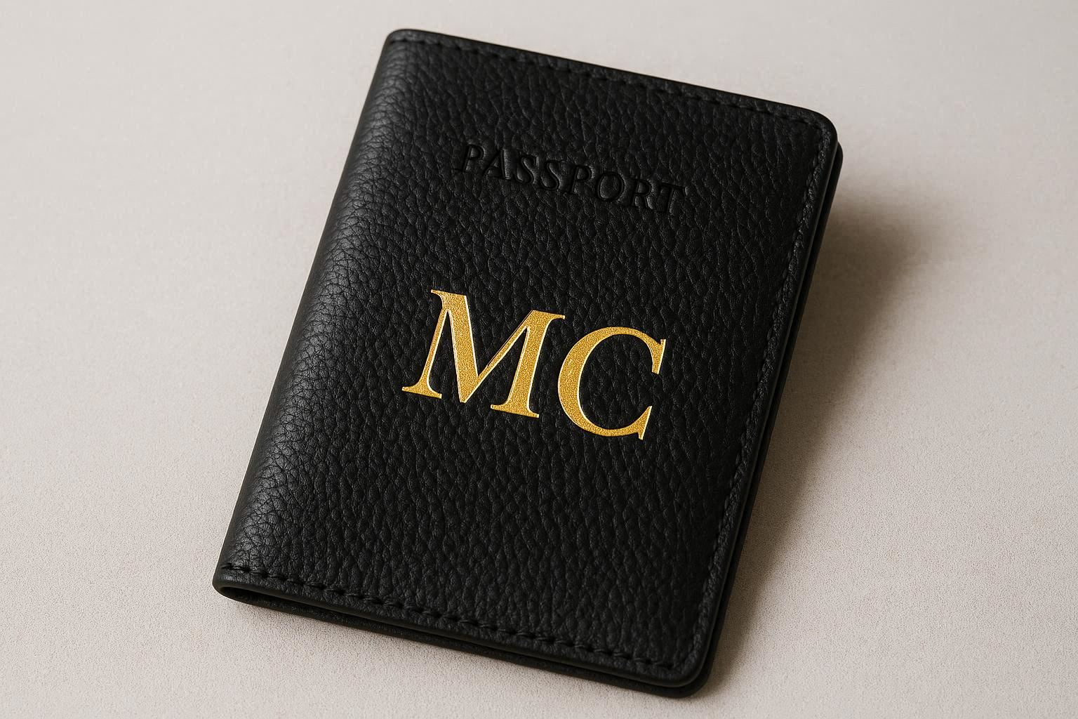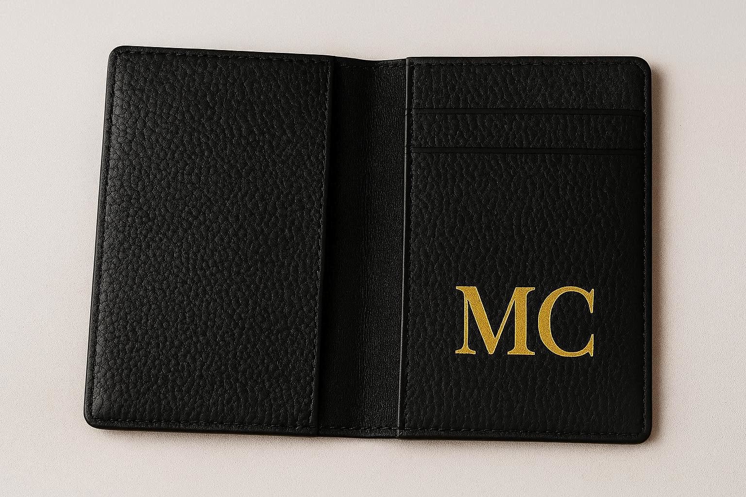Elevate your travel style with this luxurious passport holder crafted from premium cowhide leather. It can be personalized with up to three initials in elegant gold foil stamping on the front cover. The holder features a sleek, card slot only interior to maintain a slim profile, protecting your passport in a snug, dedicated sleeve.